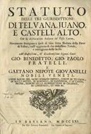Statuto delle tre giurisdittioni di Telvana, Juano, e Castell'Alto, con la dichiaratione italiana del testo latino