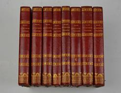 Otto volumi di cm. 18,5, pp. oltre 2.000 complessive. Elegante legatura coeva in mezzo marocchino rosso con piccole punte, dorsi lisci con titoli e fregi in oro. Pochi segni d'uso, esemplare in ottimo stato di conservazione, ben legato.