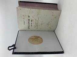 3 volumi rilegati in un tomo in 8 (cm 17 x 26), pp. XVIII + 515 + (1) + (2) di errata con 1 tavola all'antiporta con ritratto di Gregorio IX entro medaglione applicato su cartoncino; 471 + (1) di errata; 506 + (4) + (2) di errata. Abrasioni al frontespizio del I volume con foratura della carta e alcune bruniture. Qualche brunitura sparsa alle pagine. Legatura coeva in mezza pelle. Edizione originale, completa dei 3 volumi pubblicati tra 1872 e 1873, di questa ponderosa opera di Pietro Balan su Gregorio IX. Raro.