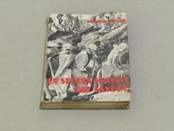 Testo di epoca fascista sulla storia sociale del lavoro. Copertina ingiallita e leggermente usurata ai bordi, le pagine sono ingiallite e intonse, leggermente scollato dal dorso. Pagine e copertina con diverse macchie del tempo.