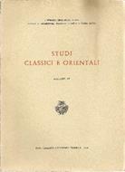 Testi di Pier Angelo Ariatta (Glosse inedite ai Theriaka di Nicandro. Cod. Vat. Graec. 305), Bruno Zonta (I codici G L P V dell'Elementarium Papie: il primo sondaggio nella tradizione manoscritta ed alcune osservazioni relative), Ignazio Cazzaniga (Osservazioni critiche al testo di Antonino Liberale (26, 1 39, 3 14,2 e 3-4 41, 9), S. Donadoni (A proposito del papiro Vindobonense K. 8313), Edda Bresciani (Una statua in abito persiano al museo del Cairo. Due stele demotiche del museo del Cairo), Ornella Zanco (Osservazioni a Strabone, XI 503, sulla religione degli albani caucasici), Aldo Bartalucci (I ''nomina cultà' dei plebei urbani in Ammiano Rer. Gest. XXVIII, 4, 28), Silvio Ferri (Esigente archeologiche). Alcune tavole in nero f.t. 8vo. pp. 178. Molto Buono (Very Good).