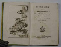 Cm. 21, pp. x, 242 (4). Con antioporta illustrata. Legatura coeva in cartoncino colorato con decorazioni in oro ai piatti. Bordi della legatura scoloriti e qualche traccia d'uso, peraltro ben conservato. Operetta molto rara, una sola copia censita in Iccu.