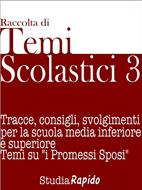 Temi svolti 3 è una raccolta di 31 svolgimenti pensati per gli alunni della scuola media inferiore e superiore. I temi sono svolti adottando lo stile di un ragazzo in età scolare, con l'obiettivo di dare un metodo corretto su come elaborare il componimento. I temi sono raggruppati per generi: temi espositivi, il saggio breve, temi argomentativi. Ogni tematica è presentata con una breve descrizione che spiega come impostare un tema che rispetti il genere. Un capitolo a parte è dedicato ai temi su "i Promessi Sposi", il romanzo di Alessandro Manzoni. Le tracce sviluppano l'analisi dei personaggi del romanzo, dell'ambiente e del contesto nel quale i protagonisti si muovono. Temi scolastici 3 vuole essere un aiuto per tutti gli studenti delle scuole medie inferiori e superiori nell'imparare a scrivere correttamente, rispettando le tracce e gli stili richiesti dall'insegnante.