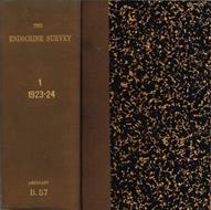 Volume I completo composto da quindici fascicoli, dal N. 1, ottobre 1923 al No. 15, dicembre 1924, rilegati in un unico tomo, del periodico mensile The Endocrine Survey - Continuing The International Digest of Organotherapy, redattore capo: Henry R. Harrower, M. D. Volume degli anni '20 del '900 in stato discreto, rilegato con coperta, non coeva, in mezzatela con angoli, piatti marmorizzati, sul dorso caratteri dorati in bassorilievo, qualche segno del tempo, tracce di fioritura sparsa, tagli appena ambrati, quello di piede con graffi, quello di testa di colore bordeaux. pagine ben conservate, prime e ultime appena ambrate. Il rilegatore ha mantenuto all'interno del volume il piatto anteriore originale del I.o fascicolo, in cartoncino, con catalogazione bibliotecaria manoscritta e qualche appunto a matita. Presenta alcune inserzioni pubblicitarie. Numero Pagine 630, numerazione delle pagine in sequenza
