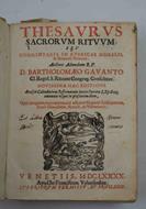 Thesaurus sacrorum rituum, seu Commentaria in rubricas missalis, & breuiarij romani. Auctore admodum r.p. D. Bartholomaeo Gavanto Cl. Regul. S. Rituum Congreg. Consultore. Novissima hac editione accessit calendarium reformatum iuxta decreta S. Rit. C