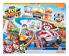 Si tratta di una corsa per guadagnarsi le ali per mezzo di questa pista per missioni Top Wing. Posiziona i Piloti per la missione di controllo Top Wing in cima alla pista e solleva il doppio trampolino di lancio per incanalarli sul percorso. I piloti Top Wing prendono velocità lungo le due corsie a spirale e si lanciano da una rampa in aria per guadagnarsi le ali. Il gioco prevede un deviatore, che consente ai bambini di spostarsi da una corsia all'altra della pista. A rendere il finale più entusiasmante ci sono delle piastrine a fine corsa dotate di targhette distintive che ruotano quando i veicoli raggiungono il traguardo. Fornito insieme a un personaggio Pilota. Cerca gli altri Piloti della missione di controllo per completare la collezione e farli gareggiare tutti insieme. (non incluso, venduto separatamente)'
