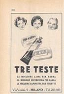 Tre Teste. Lame da barba, crema da barba, saponette. Advertising 1947