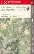 Carta topografica escursionistica (Trekking Map)del Cammino Naturale dei Parchi, rappresentazione in scala 1:35000 dedicata al percorso della 3° settimana Corvaro - Accumoli