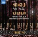 Il Trio per archi e pianoforte op.1 fu la prima opera che Korngold diede alle stampe, scritta poco prima di compiere il tredicesimo anno di età, un fatto che la dice lunga sulla precocità del talento del compositore austriaco naturalizzato americano. Tenuto a battesimo da alcuni dei migliori solisti del panorama musicale viennese, questo lavoro annunciò la nascita di una stella di prima grandezza grazie a una perfetta padronanza delle architetture armoniche e delle strutture più innovative. Composta dieci anni prima, Verklärte Nacht di Arnold Schönberg è un’opera altrettanto rivoluzionaria, come si può notare soprattutto nel trattamento della tonalità. Concepita in origine per sestetto d’archi, quest’opera ottenne nel giro di pochissimo tempo un successo talmente clamoroso, da spingere l’autore a chiedere al suo ex allievo e pianista di grande talento Eduard Steuermann di realizzarne una trascrizione per archi e pianoforte. Queste due opere vengono eseguite dal Fidelio Trio, una brillante formazione cameristica che ha dimostrato di avere una notevole propensione per il repertorio del XX secolo.