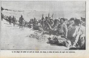 Tripolitania. La vita allegra dei soldati nei posti più avanzati. Stampa 1911