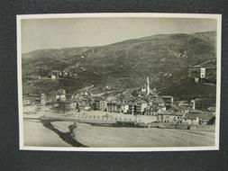 Quattro fotografie in b/n originali vintage, stampa alla gelatina ai sali d'argento, didascalie manoscritte e dattiloscritte al verso. La prima foto misura cm 13,7 x 9,7, montata su cartoncino bordato cm 22,7 x 17 ritrae un panorama del paese di Cabella Ligure con palazzo Doria in lontananza; la seconda misura cm 14,7 x 9,7, montata su cartoncino bordato cm 22,5 x 16,5, ritrae anch'essa veduta del paese con Palazzo Doria sulla destra; la terza misura cm 14 x 8,8, montata su cartoncino bordato cm 23 x 17,5, ritrae alcune case di Cornareto, frazione di Cabella Ligure; la quarta misura cm 14 x 8,8 montata su cartoncino bordato cm 23 x 17 ritrae una coppia seduta davanti al Palazzo Doria (il Palazzo non e' visibile in foto).