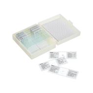 Confezione: 10 vetrini pronti1. Proglottide di Tenia (verme solitario)2. Uovo di tenia (verme solitario)3. Muscolo infettato da larve di Trichinella spiralis4. Striscio di sangue infettato da Tripanosoma (malattia del sonno)5. Striscio di sangue infettato dal Plasmodio della malaria6. Fegato di coniglio infettato da coccidiosi7. Verme del fegato (Fasciola) in sezione trasversale8. Maschio e femmina del Schistosoma mansoni, verme della bilarziosi9. Cisti idatidea di Tenia del cane (Echinococcus)10. Vermi intestinali di uomo e di cane (ascaridi)