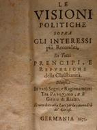Le Visioni Politiche sopra gli Interssi più Reconditi di tutti Prencipi, e Republiche della Christianità. Diuise in varij Sogni, e Ragionamentitra Psqino, e il Gobo di Rialto. Il tutto alla Luce per la commodità de' Curiosi. Germania 1671
