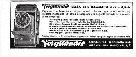 Voigtlander Bessa con telemetro 6x9 e 4,5x6. Advertising 1942