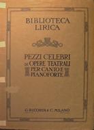 Biblioteca lirica. Pezzi celebri di opere teatrali per canto e pianoforte. Milano, Brossura editoriale, in 4°, Discreto, Rinforzi in scotch al dorso. Strappetti al margine delle pagine. N.P.109879