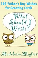 Sometimes it’s hard to find the right words, especially when you’re writing out a Father’s Day card. You want to express yourself in a way that’s heartfelt without being too sappy. Or maybe you just want to make your cool dad laugh. Either way, you can put a smile on his face with words that reflect the kind of relationship you share. In this collection, you’ll find sentiments applicable to biological fathers, adoptive dads, stepdads, fathers-in-law, grandfathers or any man who plays a fatherly role in your life. Kick your fear of “Blank Inside” cards to the curb. Or put your artistic skills to use and make your own! No need to worry about what you’ll write inside. Whether your relationship is difficult or idyllic, you’re sure to find the ideal sentiment for Dad in “What Should I Write? 101 Father’s Day Wishes for Greeting Cards.”