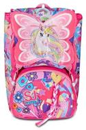 Sagomatura anatomica degli spallacci, imbottiti e rivestiti in tessuto e rete.; Zaino estensibile tramite zip laterali, ali in satin che si muovono tramite sistema ad aria dagli spallacci a pressione. Treccia multicolor in applicazione su tasca. Fantasia allover e stampa posizionata. Etichetta in gomma personalizzata con logo SJ.